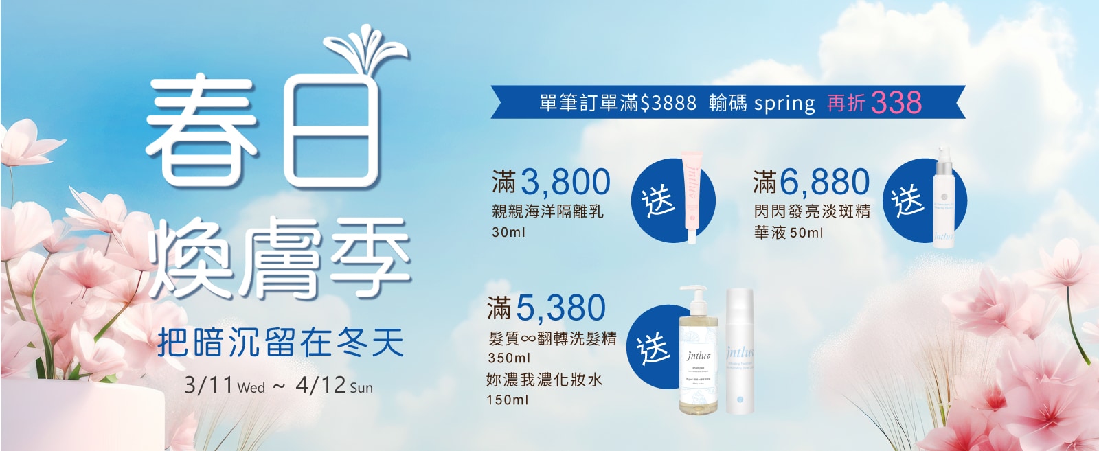 單筆訂單滿$3888輸碼spring 再折338